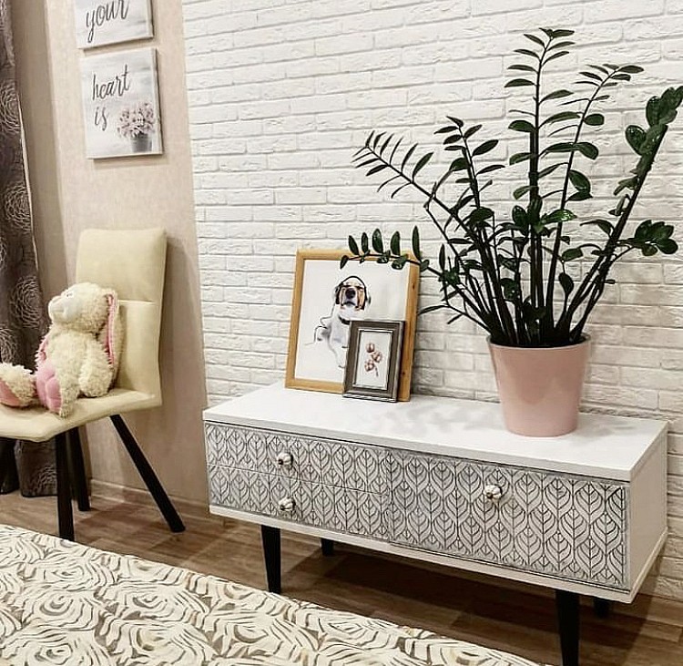 Планов на этот трафарет много, доделаю пано и за тумбочку, давно которую хочу покрасить, да руки не доходили, так как точный образ не складывался. Но сейчас все сложилось, на ней будет эта потрясающе изящная и благородная липа.
