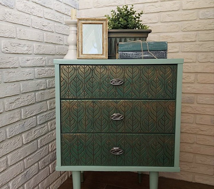 Очень долго смотрела на этот трафарет. Хотя не было планов на него, но я понимала, что все равно использую его. И вот пришло его время. Я буду перекрашивать комод в деревне во время отпуска. Вижу работы с этим трафаретом и понимаю, что интуиция подсказала приобрести этот трафарет не зря.